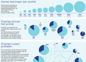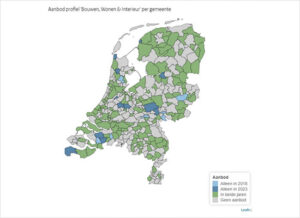 Een kaart met landelijke dekking van beroepsgerichte profielen in Nederlandse gemeenten, gebaseerd op gegevens van DUO.