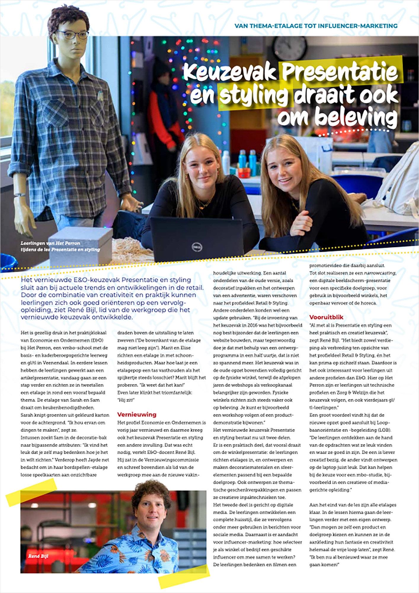 Het vernieuwde E&O-keuzevak Presentatie en styling sluit aan bij actuele trends en ontwikkelingen in de retail. Door de combinatie van creativiteit en praktijk kunnen leerlingen zich ook goed oriënteren op een vervolgopleiding, ziet René Bijl, lid van de werkgroep die het vernieuwde keuzevak ontwikkelde.
